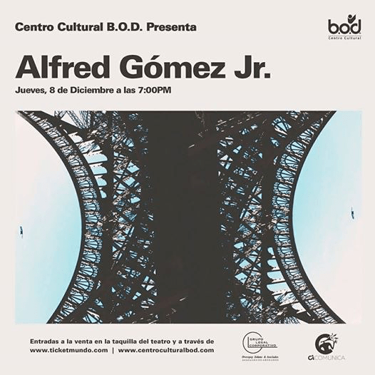 El músico, compositor y productor musical Alfred Gómez Jr. tiene todo listo para su próxima presentación en Caracas, este 8 de Diciembre en la sala experimental del BOD, a las 7:00 pm. Un show que promete hacer un repaso de sus éxitos y mostrar los nuevos temas de su próxima producción «Espiral«.