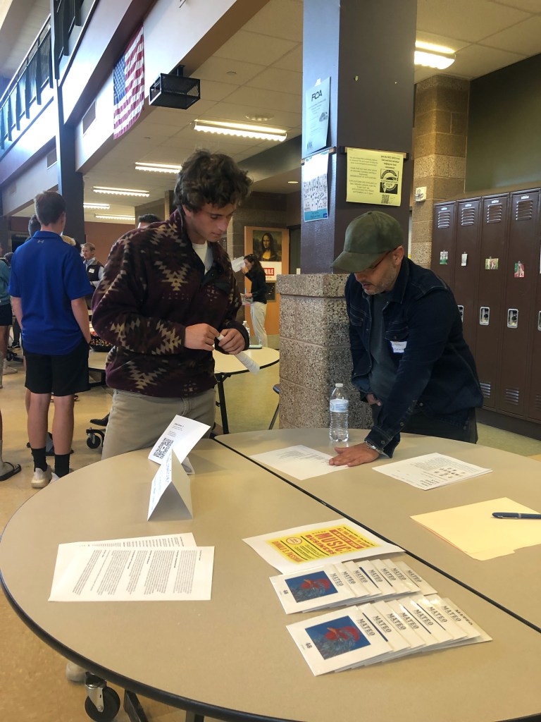 Esto fue la semana pasada en la Feria de Carreras de Cheyenne Mountain High School en Colorado Springs, donde tuve la oportunidad de compartir un poco de mi experiencia como cantautor y productor musical, así como tener una conversación abierta con los estudiantes sobre las diferentes carreras a seguir en el industria de la música. Gracias por la invitación, la hemos pasado genial, han sido todos muy amables.